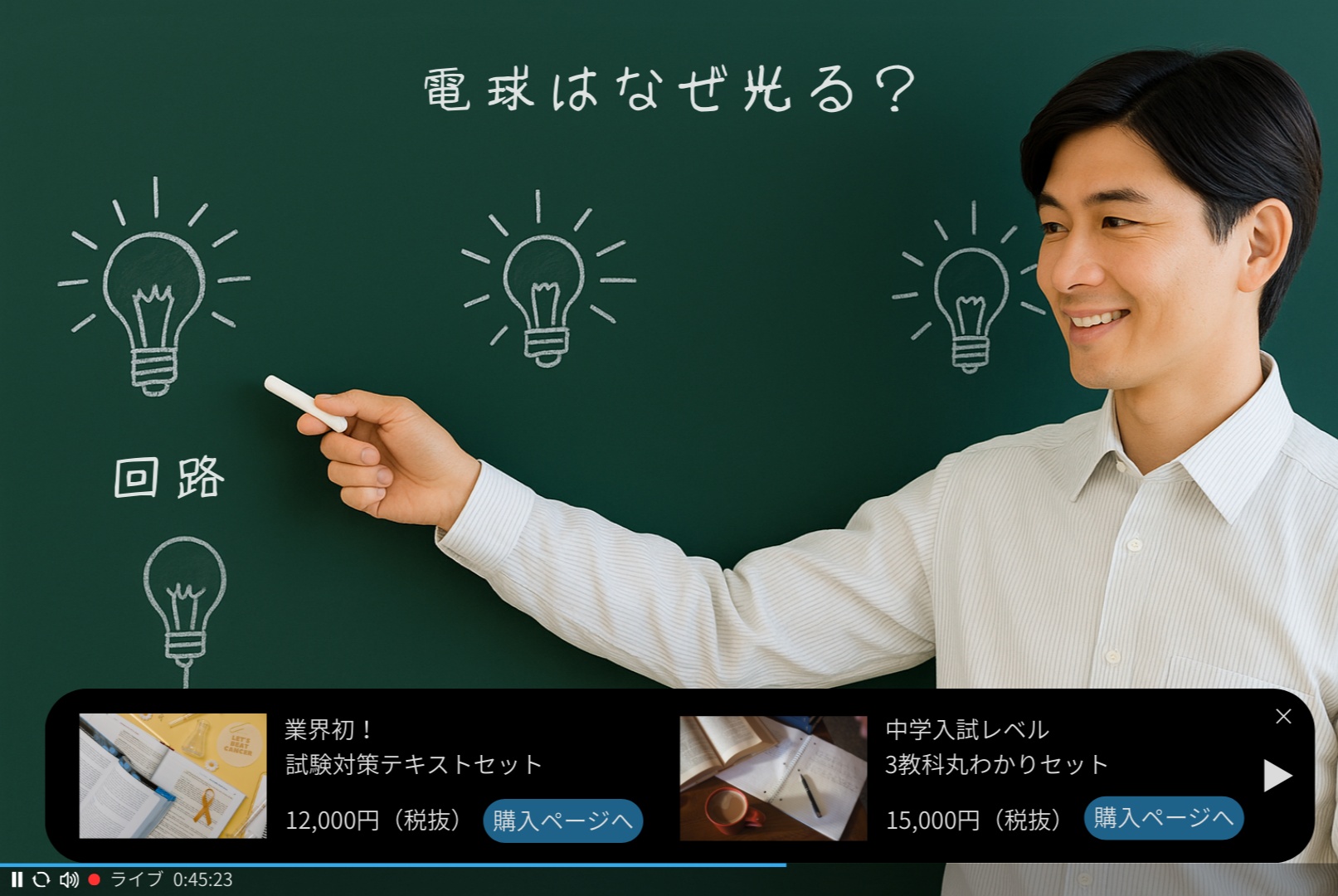 オンライン授業、セミナー、塾の講義をライブ配信できます。受講料決済、資料のダウンロード、質疑応答を一体化し、双方向の学習体験を提供します。